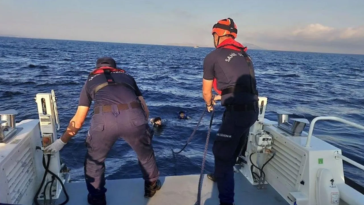 Göçmenler, Sahil Güvenlik Botu (KB-71) tarafından tespit edilip yakalandı ve bota alındı.