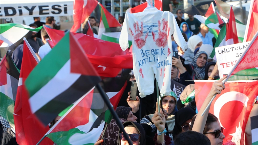 “Netanyahu 21. yüzyılın Hitleridir” yazılı pankart açıp, “Gazze’de soykırım var”, “Nehirden denize Özgür Filistin”, “Aksa özgür olana kadar Filistin’in yanındayız” yazılı dövizler taşıyan katılımcılar, Ümraniye 15 Temmuz Şehitler Meydanı’na kadar yürüdü.