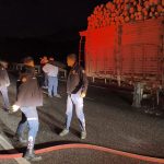 Tomruk yüklü TIR’da çıkan yangın büyümeden söndürüldü